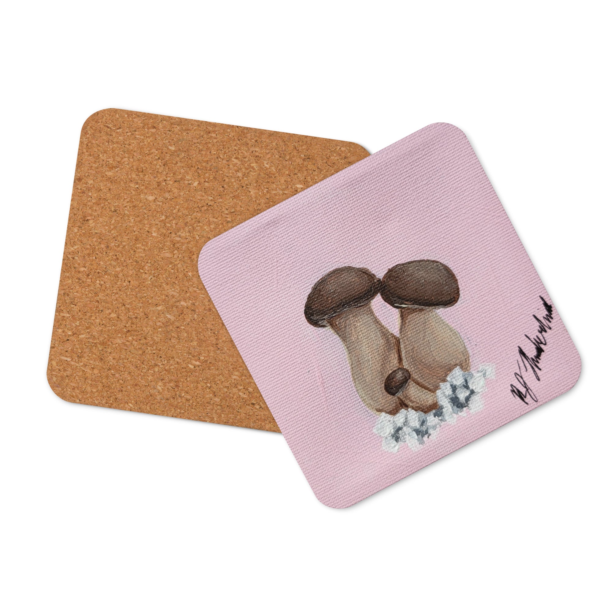 "The Mushrooms are Happy to See You" Cork-back coaster